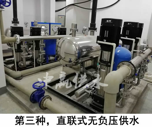 3、是采用無負壓的供水設備,直接從自來水管道加壓將水送至用戶家中。這種給水方式,沒有二次供水水箱,是目前為衛生的一種給水方式。