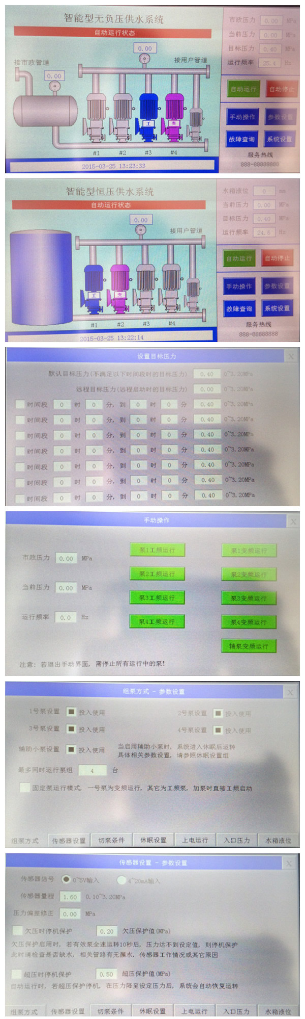 中贏恒壓變頻給水設備采用人性的視窗操作系統,采用PLC可編程控制全自動運行,無需人員看守。是目前國內最為先進的高層供水設備之一,它高度智能,自動化程度高,系統設計簡單明了,真正的滿足了任何客戶的要求,操作設備、調整參數,像我們玩手機一樣簡單,讓不懂行的客戶也能成為用水專家。