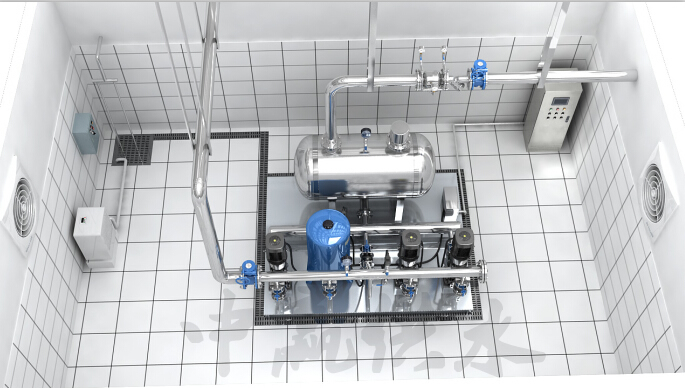 成套智能一體化供水設備主要由水泵機組、測壓穩壓罐、壓力傳感器、變頻控制柜、不銹鋼體等組成,能始終維持壓力表壓力(即用戶管網水壓)等于用戶設定值。可用于一般生活或生產供水。供水系統組成方式有: